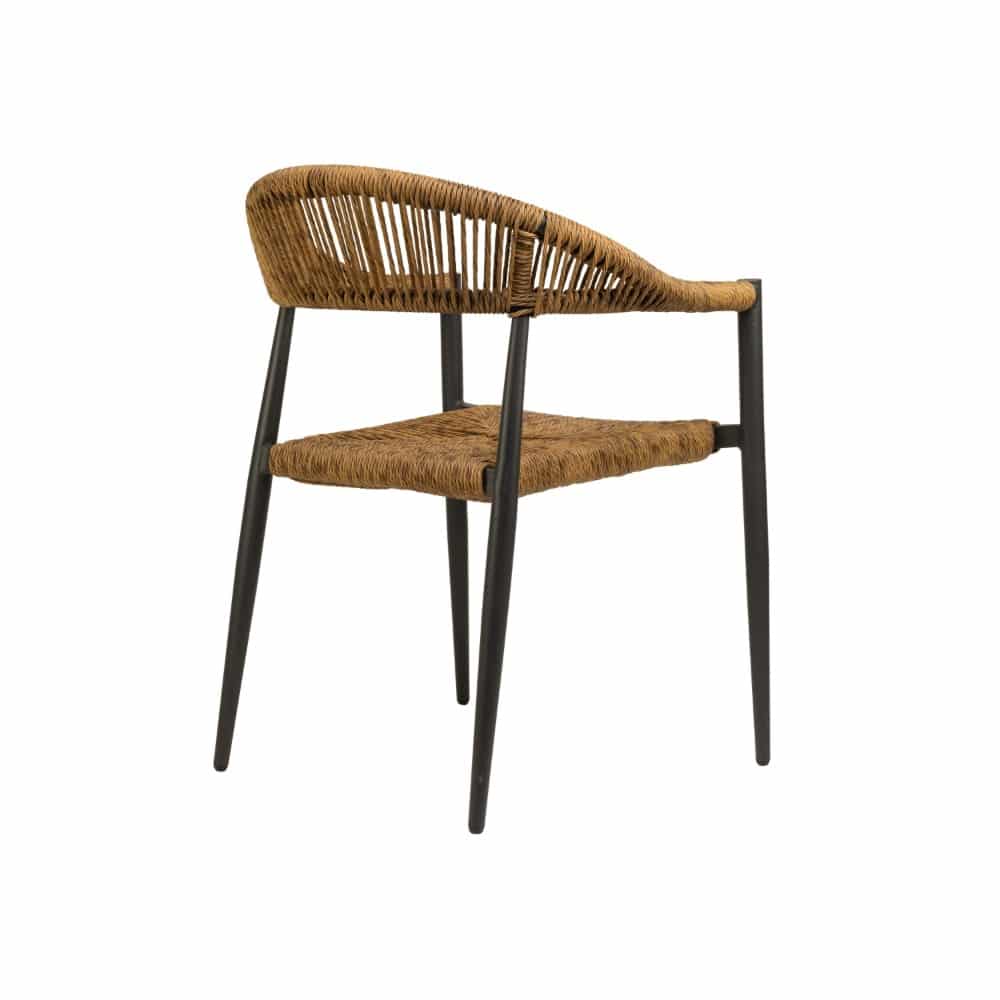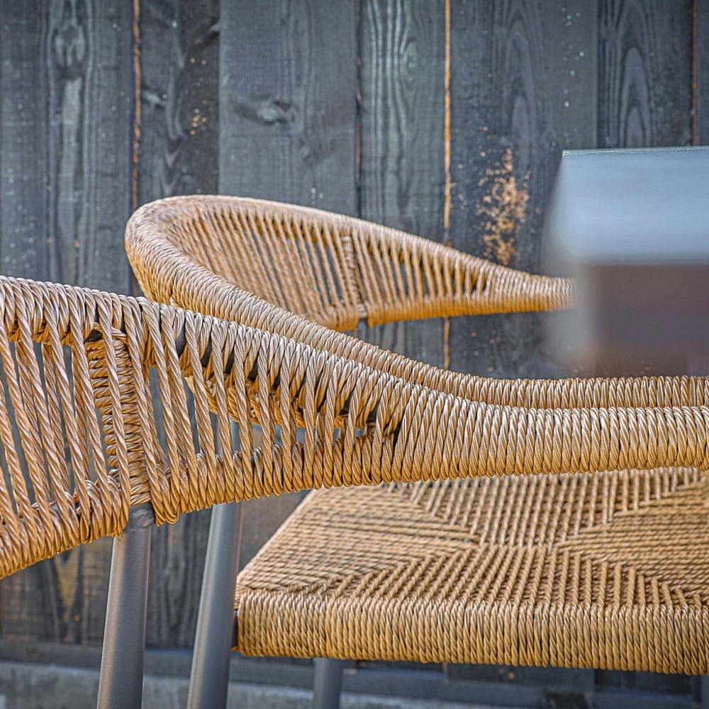 Kevyt ja kestävä terassituoli, jossa ilmava köysipunonta ja moderni metallirunko. Mukava istua, helppo pinota ja suunniteltu kestämään vaihtelevat sääolosuhteet.