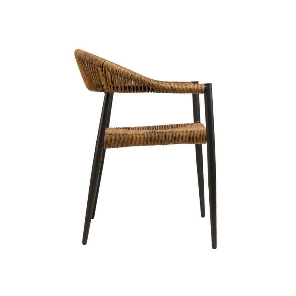 Ergonomisesti muotoiltu istuin ja käsinojat tekevät tuolista miellyttävän pidempäänkin istumiseen olipa kyseessä lounashetki tai ilta terassilla. UV-suojattu punos säilyttää ulkonäkönsä auringossa, ja pulverimaalattu runko kestää säätä sekä käyttöä ilman huolta ruostumisesta . Kevyen rakenteensa ansiosta tuolia on helppo siirtää, ja pinottavuus tekee säilytyksestä vaivatonta.