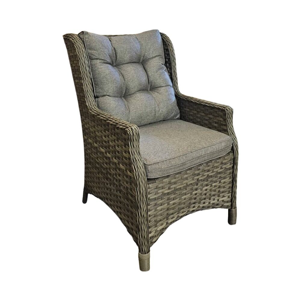 Tyylikäs ja mukava polyrottinkinen nojatuoli ulkokäyttöön. Korkea selkänoja ja pehmeät, paksut pehmusteet takaavat hyvän istuinmukavuuden myös pidempään oleskeluun. Kestävä runko ja säänkestävä materiaali sopivat erinomaisesti terassille, parvekkeelle tai puutarhaan. Helppo yhdistää erilaisiin ulkokalusteryhmiin.