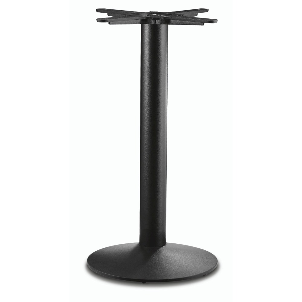 Pöydän musta valurautajalka tuo rakenteeseen vakautta. Jalan korkeus on 72 cm, pyöreän jalustan halkaisija 43 cm ja putken halkaisija 76 mm. Yläkiinnityksen 45 cm:n risti tukee kantta tasaisesti, ja musta ryppypintainen pulverimaalaus antaa jalalle viimeistellyn ilmeen samalla kun UV-kestävä pinnoite parantaa säänsietoa ulkokäytössä. Säätötassujen avulla pöytä on helpompi saada vakaaksi myös alustoilla, jotka eivät ole täysin tasaiset.